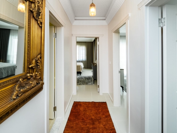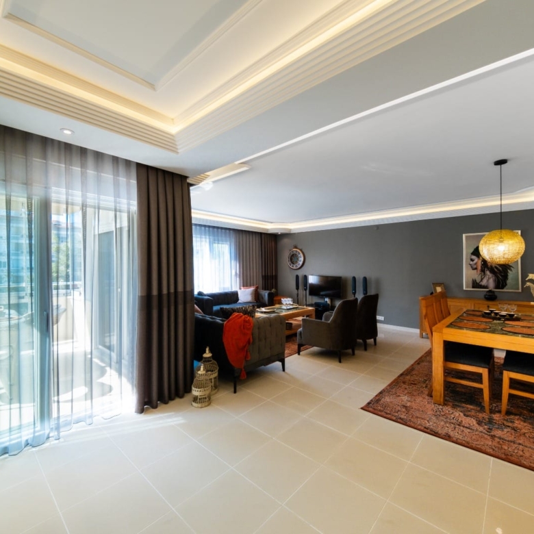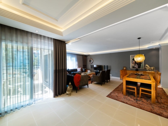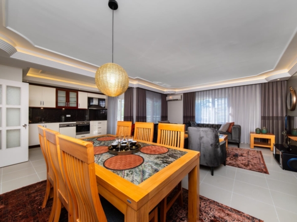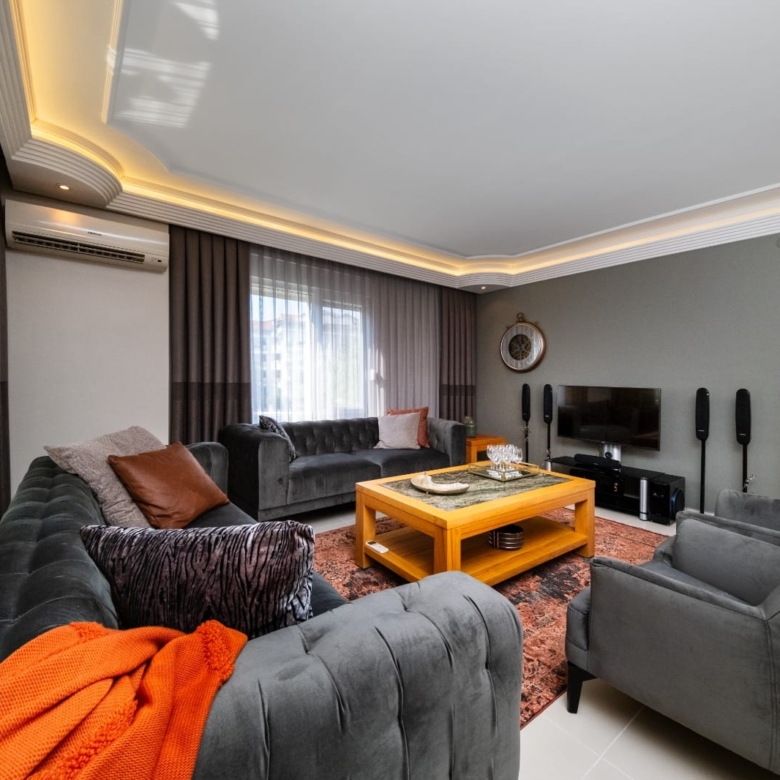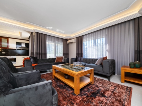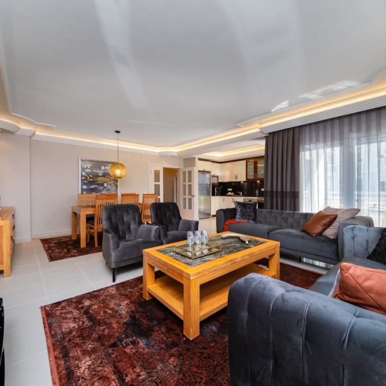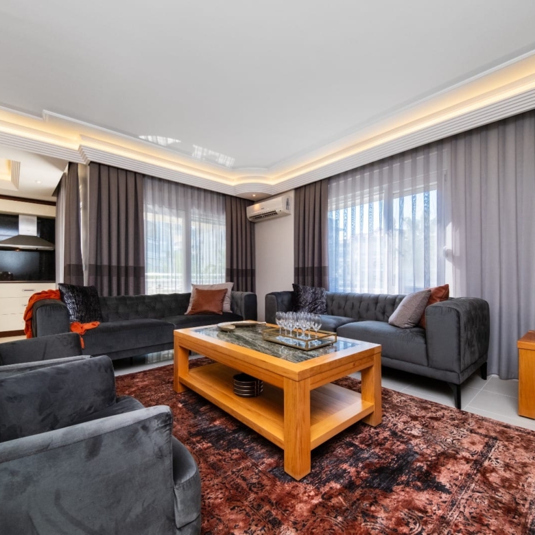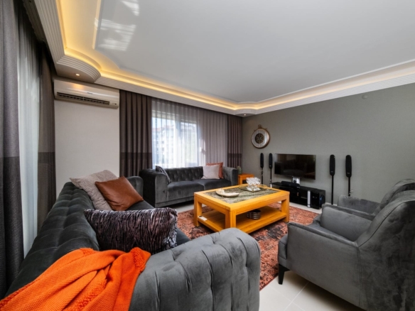 3 bedroom apartment for sale in Oba – This fully furnished 3+1 apartment in Oba offers 160 M2 of spacious living with modern comforts. Located on the second floor, the apartment features three balconies, two bathrooms with WC, a sauna, a fitness center, and both an outdoor and indoor pool. Additional amenities include children’s play areas, tennis and basketball courts, and an on-site parking garage, making it an ideal choice for families and active individuals.