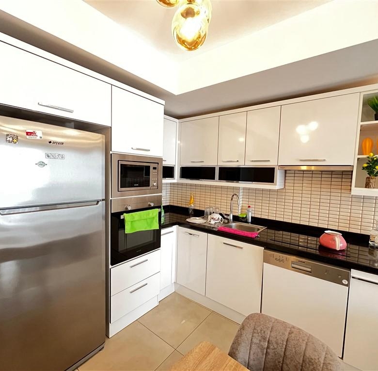 Flat for sale in Cikcilli – This fully furnished flat for sale in Cikcilli Vesta Garden offers a comfortable living space of 65 m² with a balcony, one bathroom, and a WC. Located on the 5th floor, this apartment provides stunning views of the castle, sea, and city. Residents can enjoy a range of social areas, including open and closed swimming pools, a barbecue area, fitness center, sauna, hamam, children’s play area, cinema room, garden, and table tennis.