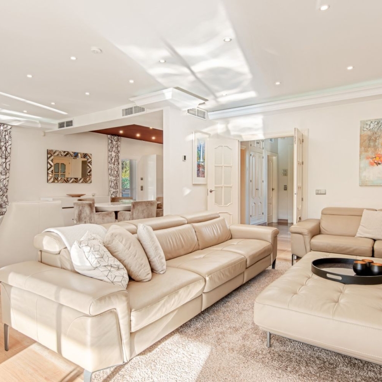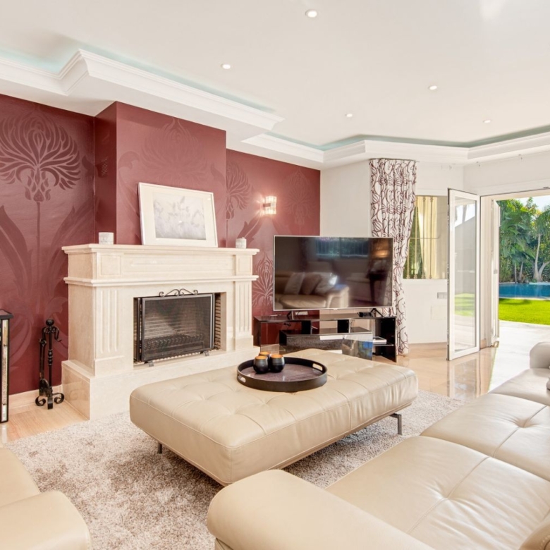 This outstanding home has a South-West orientation enjoying all day sunshine, with a beautifully designed beach-effect swimming pool and chill-out Gazebo, outdoor kitchen with built-in barbecue and high quality outdoor furniture and sun loungers. The villa comes with a total of 8 bedrooms, distributed on 4 levels. The main entrance level has 1 en-suite bedroom and an office. The living area consists an open plan kitchen, living/dining area, with access to the outdoor area on both sides. The first floor consists of a further 4 doubles bedrooms, including the impressive Master Suite, with en-suite bathroom and walk in wardrobe and a fabulous terrace overlooking to pool and garden. The loft conversion has a further double en-suite bedroom, an extra office space and a beautifully designed TV/Cinema room. The basement design is a signature part of this amazing villa. Here is where you find the impressive indoor swimming pool, SPA/Jacuzzi and GYM. The basement also comes with another two en-suite bedrooms and the access to the garage, which comfortably fits 4 cars. Every corner of this house has been improved to a high quality standard. The location is perfect for families and those who do not wish to rely on a car. Within walking distance you have a Carrefour supermarket, as well as an array of local bars, cafe’s and beach restaurants. The beach is just a 5 minute walk and San Pedro town centre is under 10 minutes. For those that enjoy strolls on the beach, the world famous Puerto Banus is a pleasant 20 minute walk. Given it’s enviable location, number of bedrooms and high quality facilities, the property has an impressive holiday rental record, providing fabulous returns on investment. It can be the perfect family home or rental investment. Viewings are highly recommended.