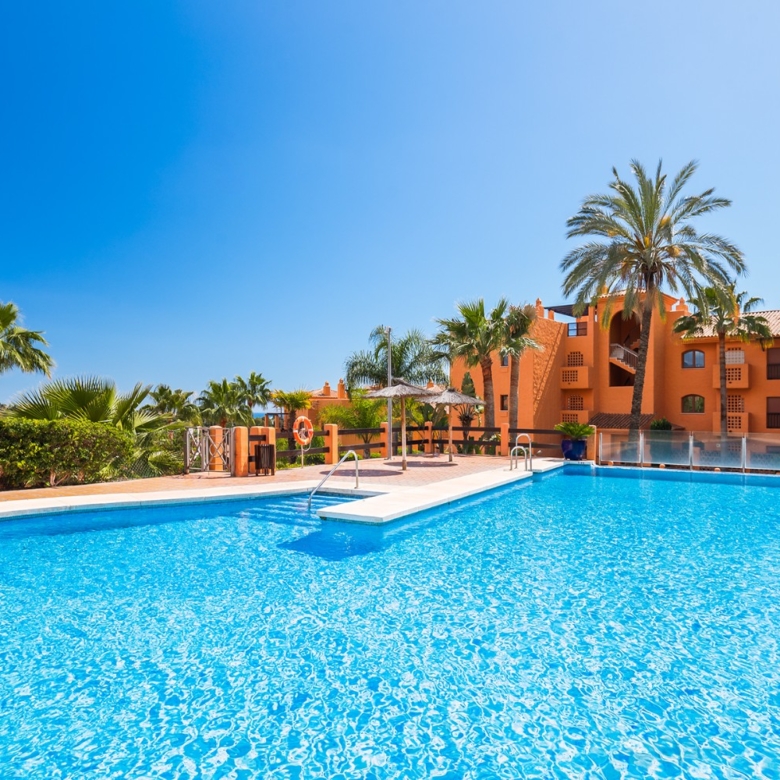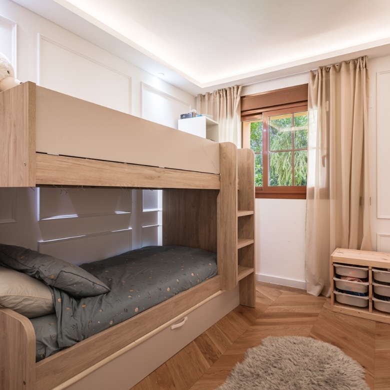 Stylishly renovated and southwest-facing, this elegant 3-bedroom garden apartment is located in the exclusive gated community of Gazules del Sol, just a short walk from Atalaya International School in Benahavís. Positioned on one level, the home features a bright and spacious living-dining area that opens onto a covered terrace and a generous 70 m² private garden, ideal for enjoying outdoor living throughout the year. The open-plan kitchen is fully equipped and includes a practical laundry and pantry area. The master bedroom boasts an en-suite bathroom, while two additional bedrooms share a modern family bathroom. High-quality finishes throughout include herringbone oak flooring, underfloor heating in the bathrooms, hot and cold air conditioning, and a Sonos sound system in the living room. The property also includes an underground parking space and a storage room. Residents of Gazules del Sol enjoy access to three outdoor swimming pools set within beautifully maintained gardens, a paddle tennis court, a fully equipped gym with saunas and changing rooms, and a heated indoor pool, offering the perfect blend of comfort, security, and lifestyle.