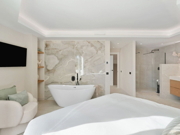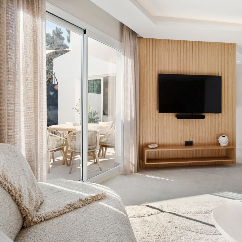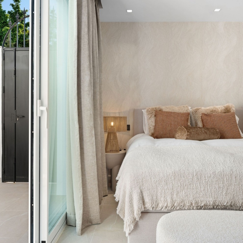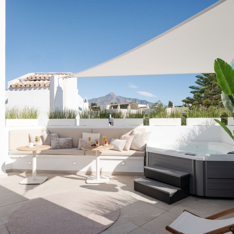 Nestled in the heart of Nueva Andalucía, just steps from Mistral Beach and a short drive from local shops, this townhouse in Altos del Rodeo offers an ideal blend of Marbella charm, comfort, and sophistication. This south-facing property, fully renovated in 2024, offers stunning mountain views and quick access to Puerto Banús, famous for its luxury shopping and vibrant nightlife.