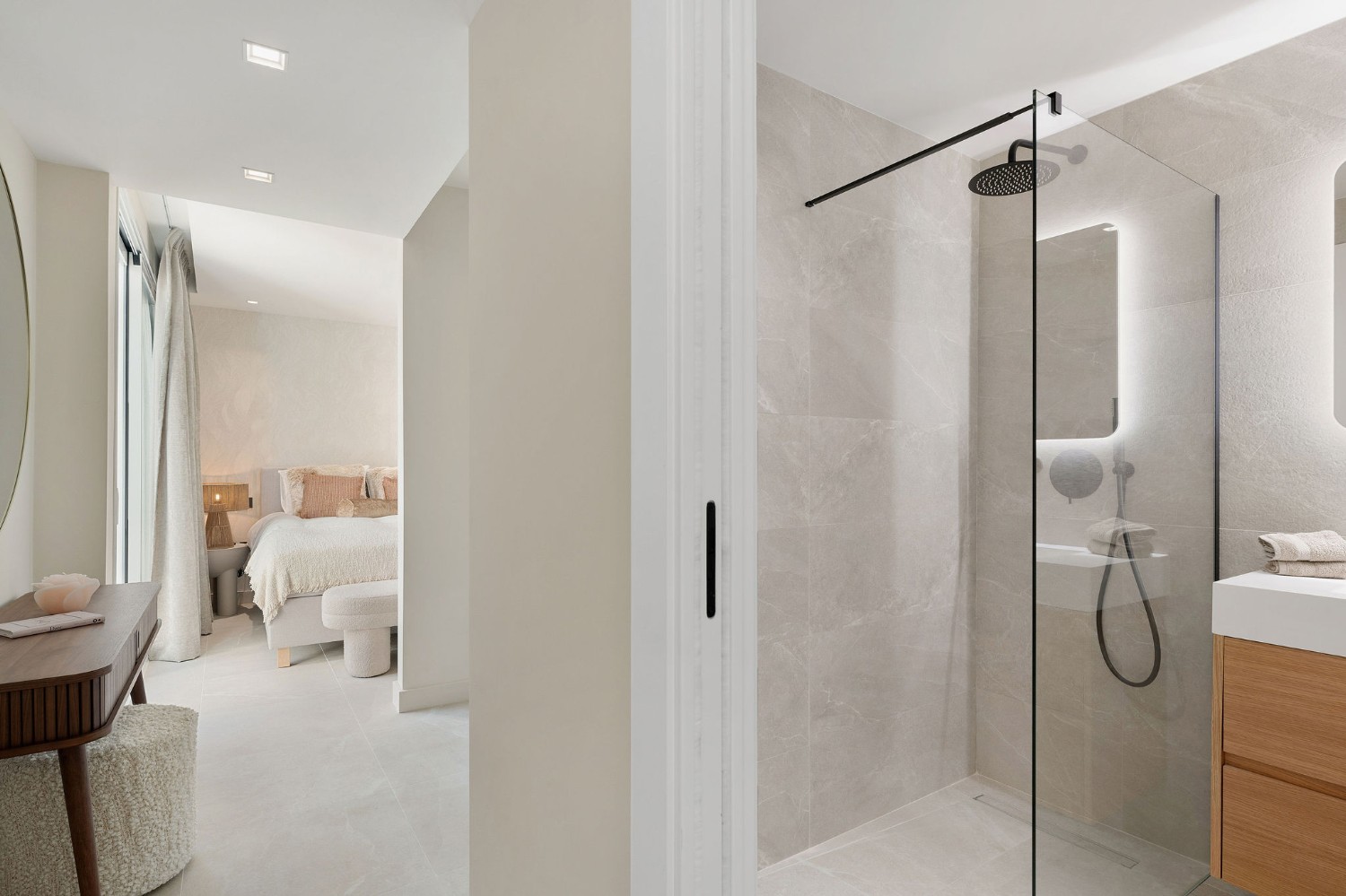With 235m² of space, including 165m² of interior living and a 70m² terrace, the townhouse provides abundant privacy and room, a rarity in such a prime location. The first floor welcomes you with a chic entrance leading to an open-plan living area, a modern kitchen with Siemens appliances, and a guest bedroom with an en-suite.