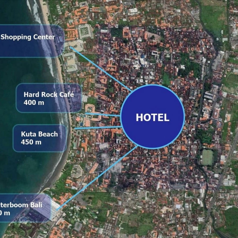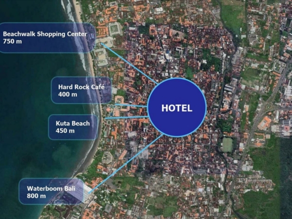 Selling point : Walking distance to Kuta Beach, walking distance to Shopping center, close to Airport,, Freehold hotel in Hot area of Kuta, Luxury five star hotel neighborhood.