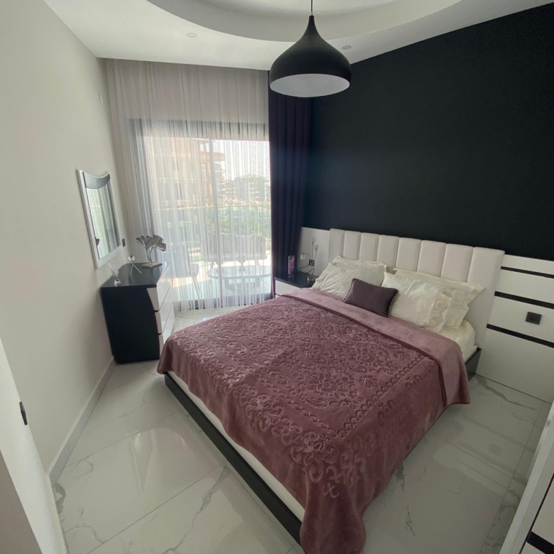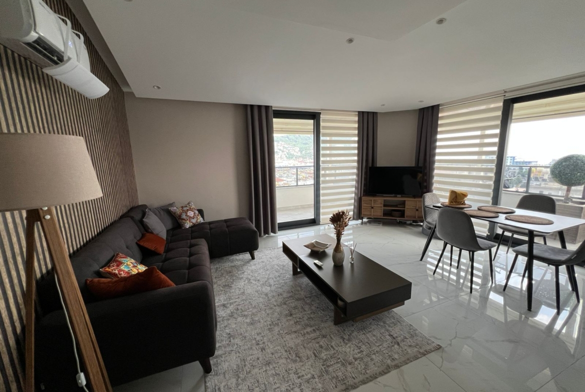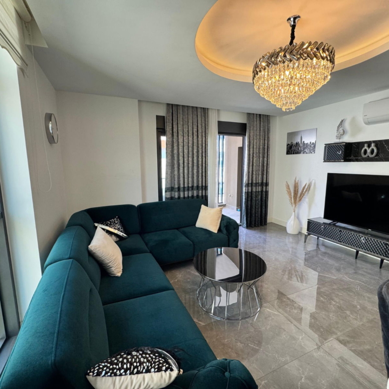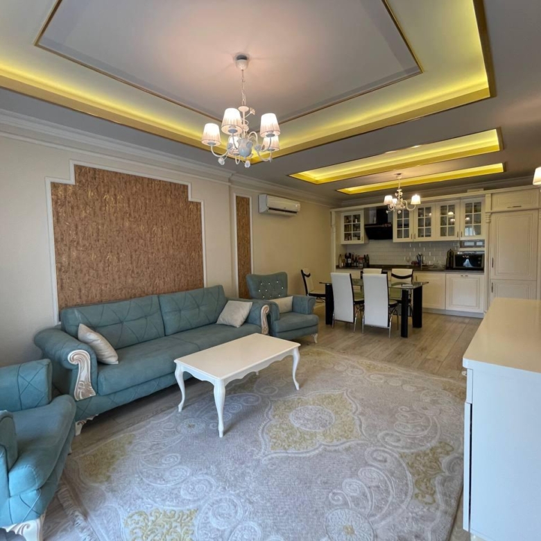This fully furnished 2-bedroom apartment is located on the 8th floor of a modern 12-story building in the popular Cebeciler Residence 9. Offering120 m²of indoor space and2 balconies, the property enjoys views of the city and the Taurus Mountains, just250 meters from the beach.