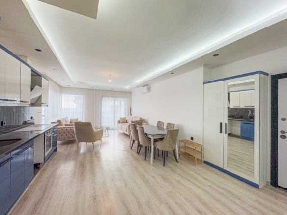 2 bedroom apartment Mahmutlar – Discover this beautifully furnished 2+1 apartment in Mahmutlar, located on the 8th floor with South-West-East facing views. Spanning 115 m², this spacious unit is only 300 meters from the sea. Enjoy premium amenities such as a swimming pool, sauna, fitness center, elevator, and concierge services for a luxurious lifestyle.