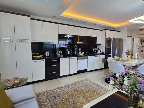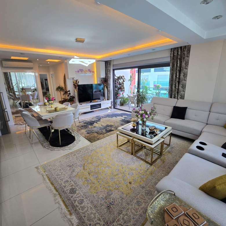 This furnished 2-bedroom apartment is located on the 3rd floor of the prestigious Konak Seaside Homes Residence in Kargıcak. With 135 m²of living space and a southeast-facing layout, the unit is bright, spacious, and ideal for both holiday stays and long-term living.
