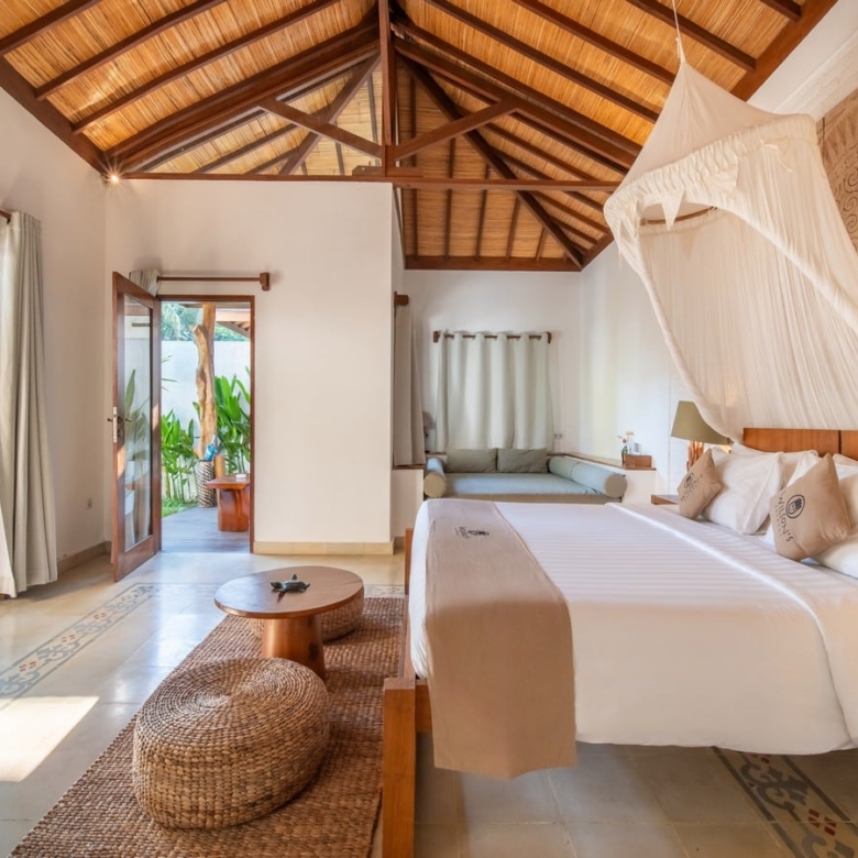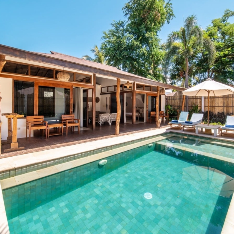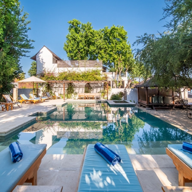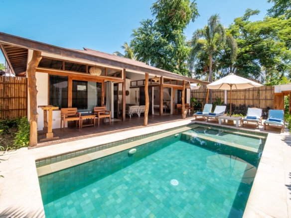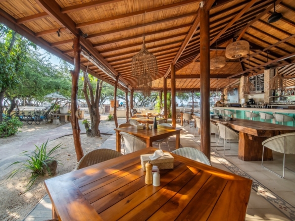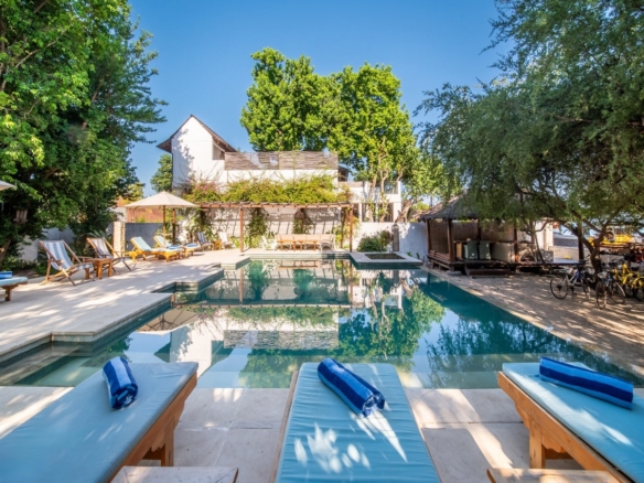 Located on the peaceful north coast of Gili Trawangan, on a gorgeous white sandy beach with stunning sunset views over Bali’s mountains, this resort is strategically located steps away from the best snorkelling and diving spots on the island. This well-established, FREEHOLD beachfront property sprawls on 4,446 sqm of land and consists of 22 airconditioned ensuite units (16x Standard Rooms, 2x Two Bedroom Villas with pool and 2x One Bedroom Villas with pool).