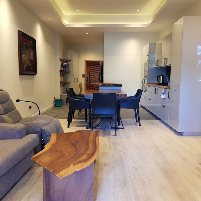 This elegant 115 sq.m 2-bedroom, 2-bathroom condominium is located in the well-established Grand Condotel, a low-rise beachfront residence positioned in one of Jomtien’s most desirable locations. With its direct access to Dongtan Beach via a private walkway, this community is known for its peaceful atmosphere, large land plot with mature greenery, and resort-style layout — ideal for those seeking a quiet home near the beach with generous living space.