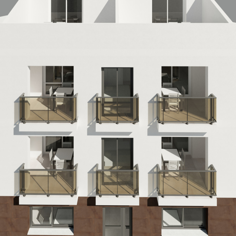 There are 6 apartments with 2 and 3 bedrooms, with 2 bathrooms, terrace and patio and 2 penthouses with 14 m 2 terraces.
