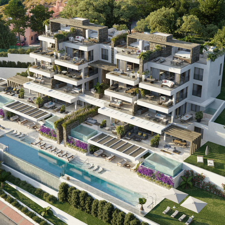 A boutique development designed around individuality, with just 16 tastefully styled and beautifully finished apartments in La Cala de Mijas, with two and three bedrooms. Within a private gated community, that offers spectacular 180° views of the sea.