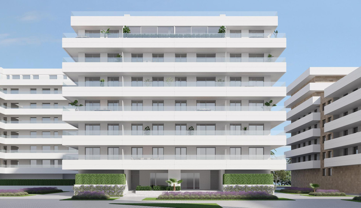 This project seeks to maximize the connection of the buildings with the beauty of the outdoors. For this reason, the team, together with Herrero-Osborne Arquitectos, have designed a building with large terraces with continuous glass railings and large windows that take full advantage of natural light and stand out against the white of the building, creating an elegant and modern design.