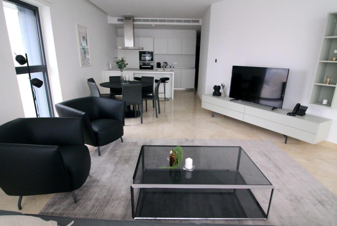 An exclusive two bedroom apartment of high standards on a unique location in the city centre of Nicosia. This flat is on the 11th floor consisting of a stylish open plan living room, dining room and modern kitchen that overlook the city through large balcony doors. The apartment benefits from its location and offers amazing unlimited views from almost every spot indoors and from its large verandas.