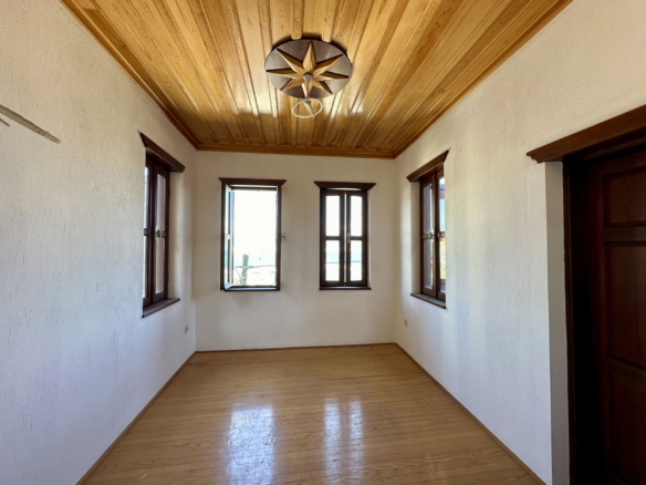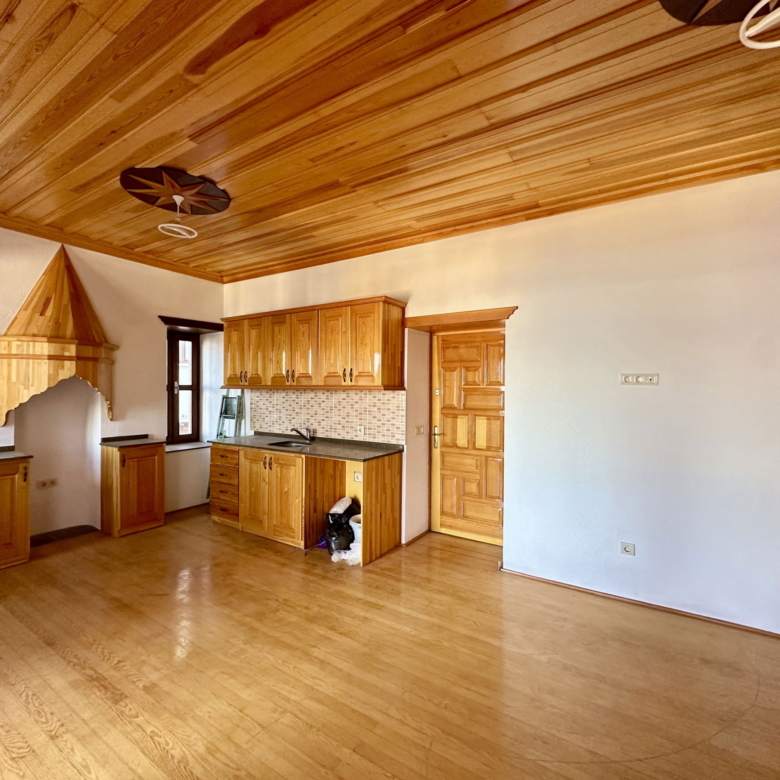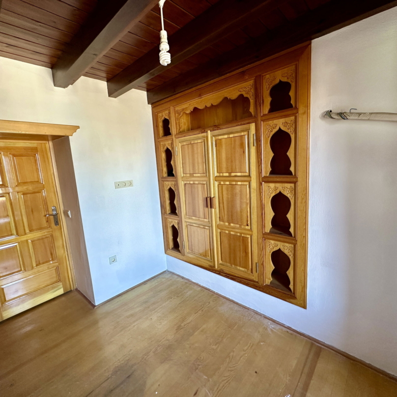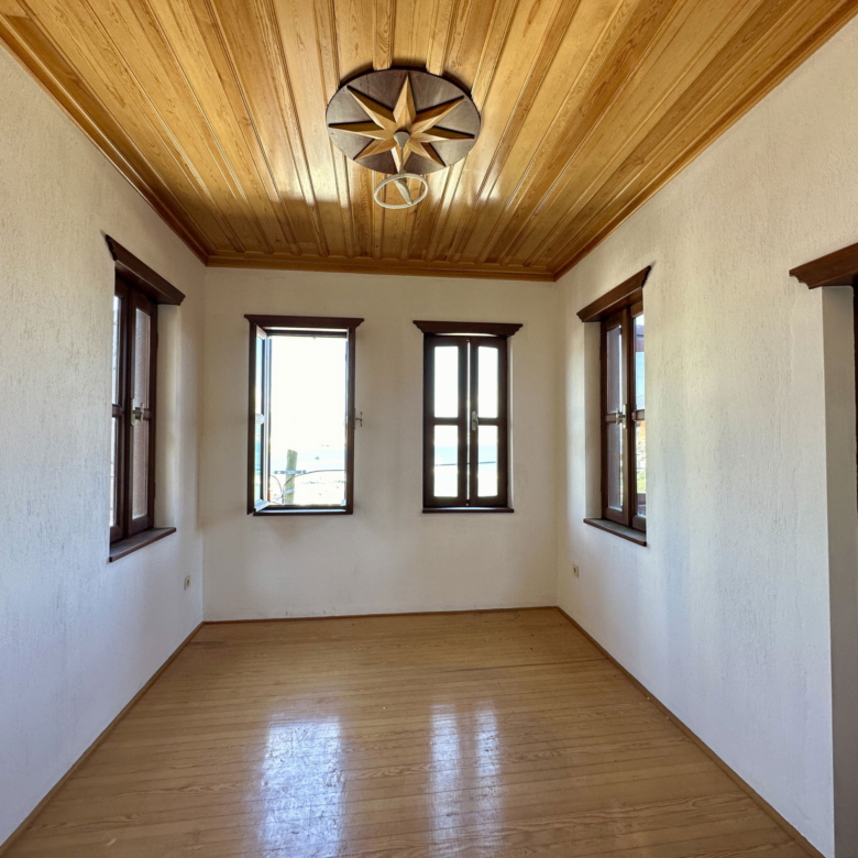 Living Atmosphere: Natural wood dominates the interiors — ceilings, doors, window frames, even the kitchen cabinets. This brings warmth and authenticity, while traditional star-pattern details in the ceilings reference old Turkish houses.