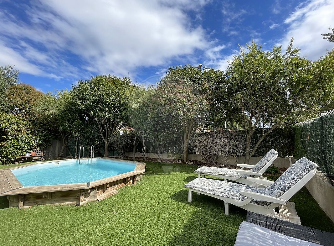 Lovely 4-bedroom house with garden in the heart of the village of Alignan-du-vent with countryside views! Newly renovated ground floor with large entrance hall, lovely living/dining room and open kitchen suite with shower room, large dressing room and double bedroom, wc. The second floor comprises 3 bedrooms, a bathroom and separate wc. A large area surrounds the house to the full outside: a terrace, a garden with above-ground pool and a nature area space currently devoted to vegetable gardening (water recuperator and garden meter). There’s also a garage + twoparking spaces. Ready to move in? Here you are!
