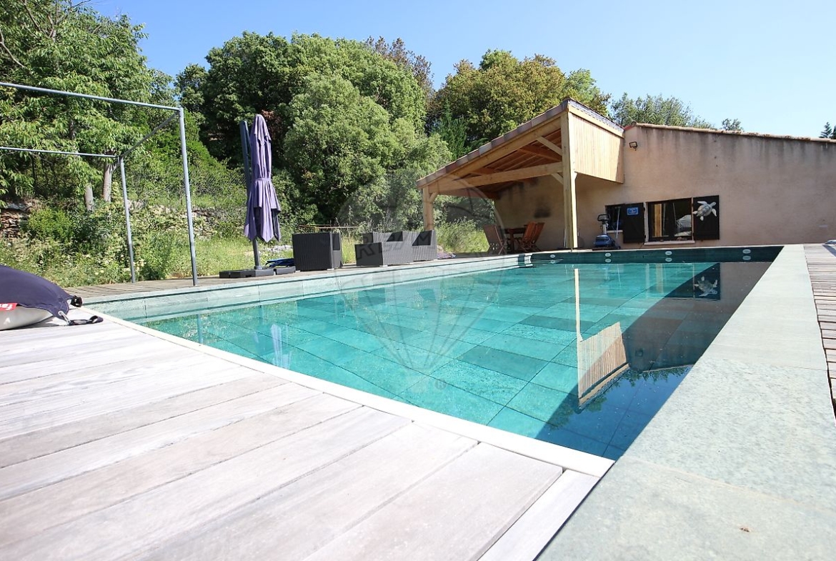This detached property is set in Faugeres heights, with elevated views over the countryside, on a large plot of 1471m2. There is the fabulous new salt water heated pool of 10m x 5m with an automated safety cover.
