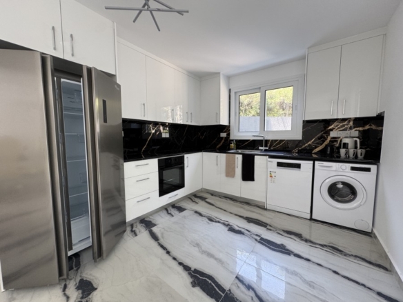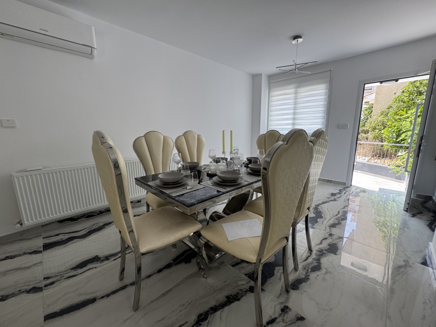 This lovely 4-bedroom townhouse is located in the sought-after Ag. Tychonas tourist area, just a short walk from the prestigious Amara Hotel and the beach. The location is ideal, offering a quiet neighborhood and easy access to the Nicosia-Limassol motorway.Fully renovated in 2024, the property features an open-plan living area with a modern kitchen that flows seamlessly into a cozy, small garden yard. The ground floor also includes a small bedroom and a toilet with a shower.On the first floor, you’ll find three bedrooms, each with its own ensuite bathroom. The master bedroom is especially spacious and includes a walk-in wardrobe. Central heating and AC ensures comfort throughout the year.This cozy, newly renovated townhouse comes fully furnished and is move-in ready, making it the perfect home or vacation getaway.