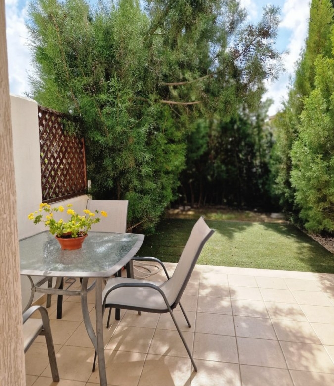 2 bedroom townhouse in the most prestigious complex of Lower Paphos – Elysia Park in the heart of the Universal area in Kato Paphos. This exclusive luxury complex, located in the heart of Kato Paphos, is surrounded by beautifully manicured gardens and equipped with everything you need for relaxation and permanent residence. The complex has the most prestigious fitness room in Paphos, a pharmacy, a beauty salon, a supermarket, and a popular restaurant with live music.It offers extensive leisure facilities with 2 lagoon-style pools with separate levels, a children’s pool and play area, comfortable sun loungers for everyone.This townhouse offers an open-plan dining room and separate kitchen, 2 bedrooms, 2 bathrooms, a veranda, a garden, outdoor parking. Title deeds available