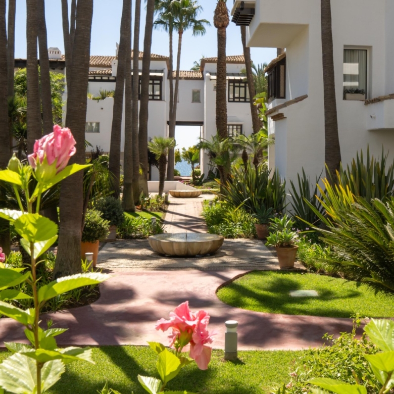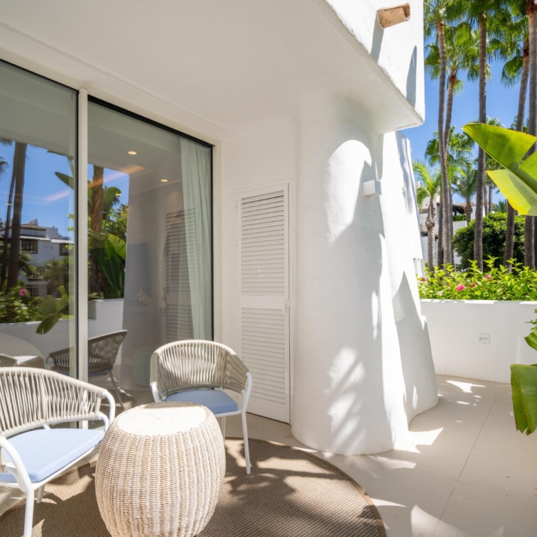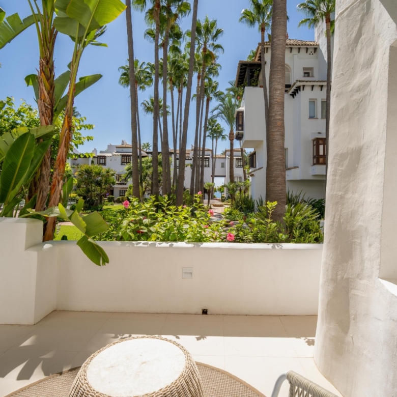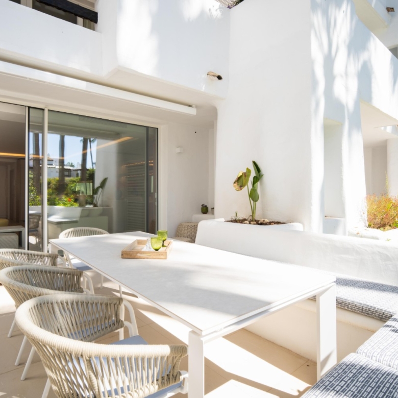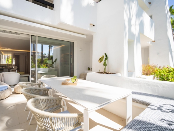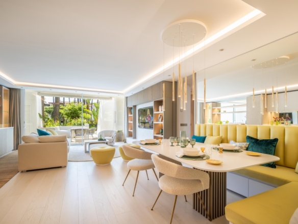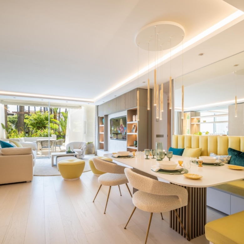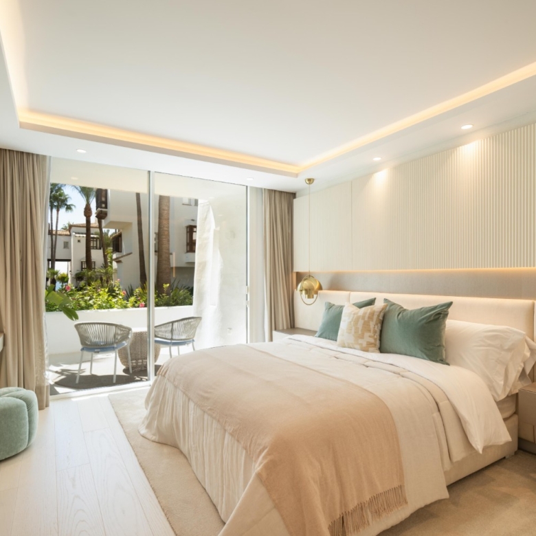 Nestled within the exclusive Puente Romano resort, this stunning modern apartment offers the perfect balance of luxury and comfort. The open-plan living area, enhanced by integrated LED lighting and sophisticated interior design, flows effortlessly onto a generous outdoor terrace—ideal for alfresco dining and relaxation with breathtaking views of the resort surroundings. Accessible directly from both the living area and the master suite, the terrace invites seamless indoor-outdoor living.