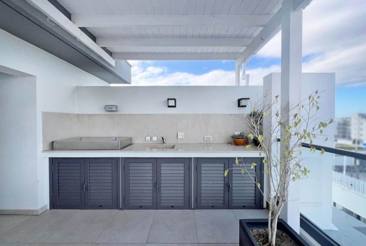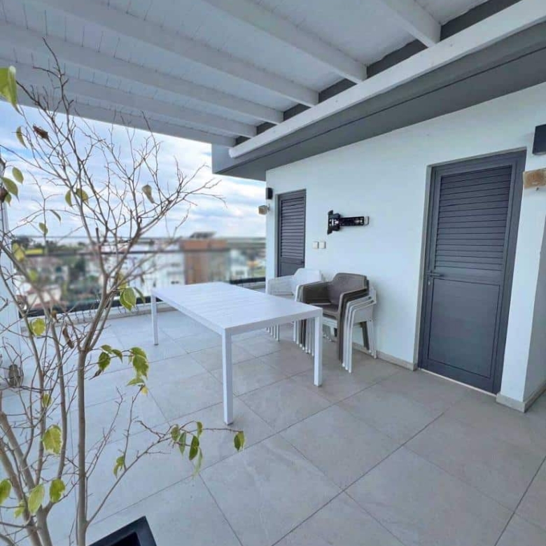 This spacious 2 bedroom, 2 bathroom semi-furnished penthouse with title deeds offers both comfort and flexibility. The additional room is fully enclosed and can easily serve as a home office, guest room, or extra living space. The open-plan design creates a bright, airy atmosphere, while the private roof garden is an entertainer’s dream, complete with a barbecue area, extra shower, and toilet. Enjoy breathtaking views, perfect for unwinding or hosting guests. With essential furnishings already in place, this penthouse provides a seamless blend of convenience, modern living, and outdoor luxury. Ideal for those looking for a move in ready home with extra perks.