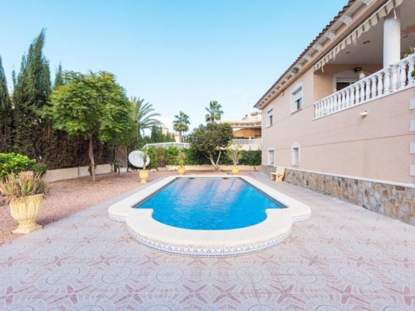 We are pleased to offer this Luxury Villa in Benferri, Orihuela, Alicante.  A 4 bedroom 2 bathroom, 210m2 interior, This fabulous Villa is separated in to two self contained accommodations.Upstairs has a grand staircase to the sun balcony which wraps around half the top floor of the Villa with views of the surrounding mountains, countryside, the swimming pool and gardens. The front door entrance to the living room which is a large room with patio doors to the sun balcony on each side of the villa, one view of the driveway electric gates and garage entrance, the other the swimming pool and private gardens. The two bedrooms are very spacious with fitted wardrobes and the bathroom is fitted with a shower cubicle and bath. The kitchen is a large separate modern fitted with patio doors to the sun terrace and seating / dining area. A door to the downstairs, which has two more double bedrooms, bathroom, and a large living room / dining room with an open plan modern American style galley kitchen. The garden is entered through a large sliding doors from the living room to the private 620m2 plot and 8m x 4m swimming pool. The beautiful white sandy beaches are 40km away and many championship golf courses available with a short drive. A property perfect for holidays or permanent living with an extra income if you don’t need the whole Villa.