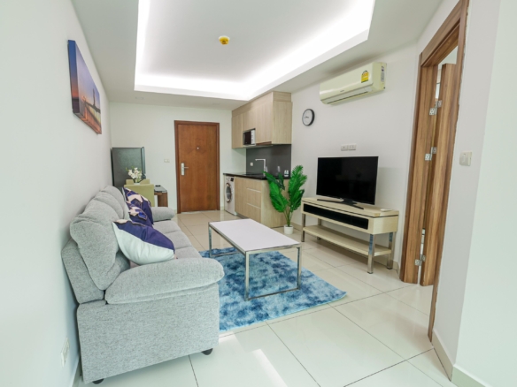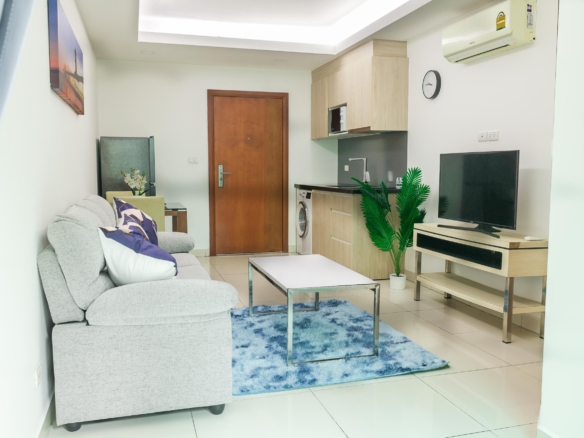 This fully renovated 1-bedroom condo is located on the 2nd floor of Building B in Laguna Beach Resort 2, Jomtien. With a total area of 37.13 sqm, the unit offers a pleasant pool view and comes fully furnished with a modern, clean interior.