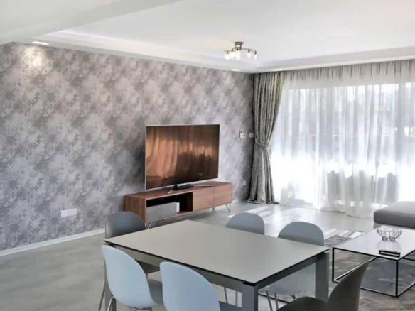 Nested In Neapolis area 200 meters from the beach this modern and spacious 180㎡ three bedroom apartment comes fully furnished including appliances, chandeliers, two large smart TV’s. There are two large terraces to enjoy, one with a small garden the unit features in floor heating and a DAIKIN air-conditioning system with doors, Wardrobes from Italy. Laufen plumbing, a fenced complex, with private parking space and large storage room. Minutes away from a large supermarket AlphaMega and a large gym Limassol Sporting Centre, also close to pharmacies, restaurants and bank. The perfect place to walk along the sea side and the promenade. Available Title Deeds as well. Don’t Miss It!