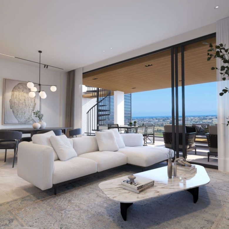 Discover your new penthouse just a 10 minute drive from Larnaca Airport, perfectly positioned on a gentle hill in a newly developed, open area that offers a peaceful setting with unbeatable connectivity. Located near the key highway hub, it provides effortless access to the airport, Nicosia, and Limassol, making it ideal for both everyday living and travel. This exclusive penthouse boasts high specifications and a sleek, modern design, offering a truly elevated lifestyle in one of Larnaca’s most promising and well connected neighborhoods. The interiors are meticulously crafted with contemporary finishes and premium amenities, blending style with comfort, while large windows invite abundant natural light into every space. The highlight of this exceptional home is the private roof garden, your own serene retreat with panoramic views, perfect for relaxing or entertaining under the sky.