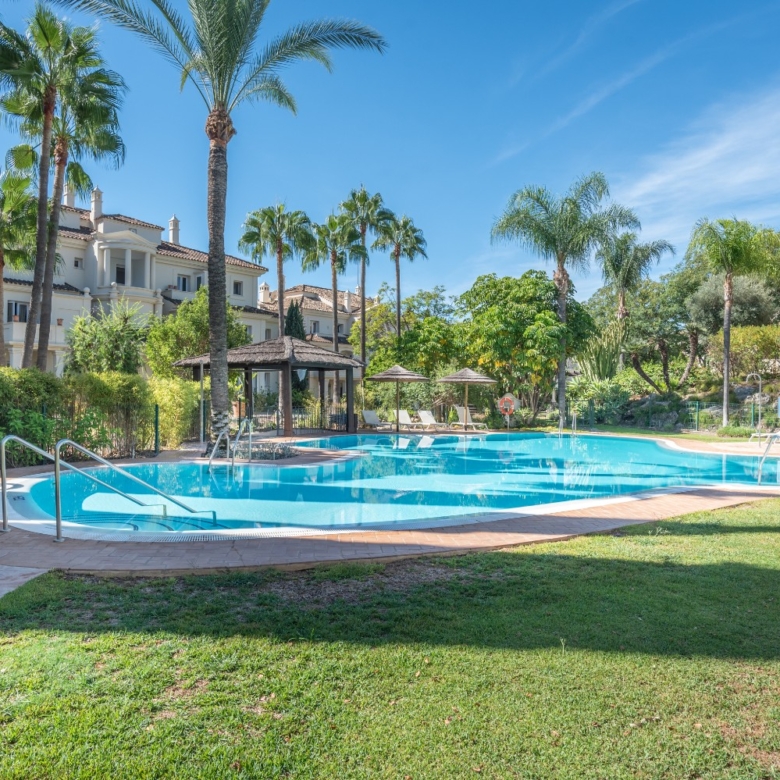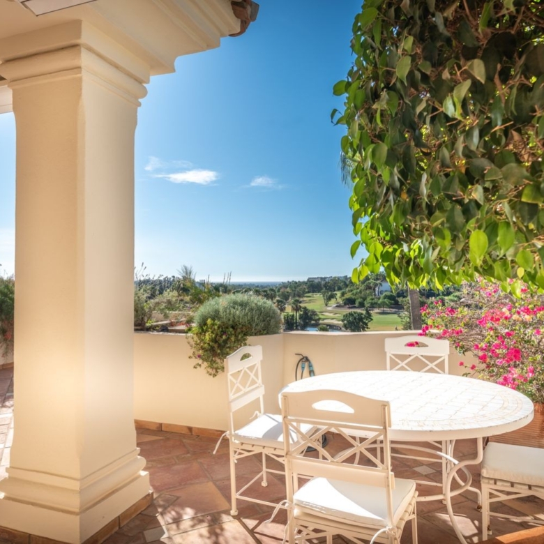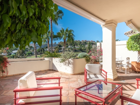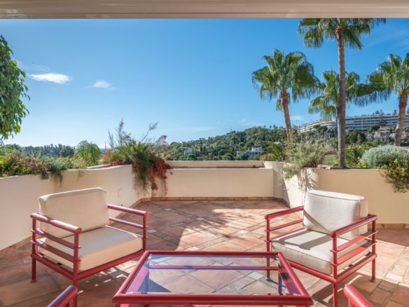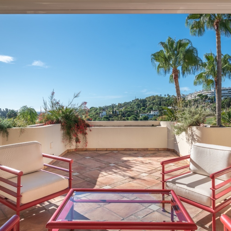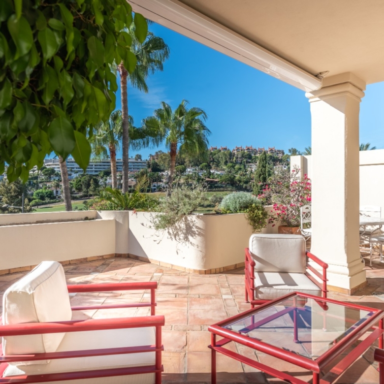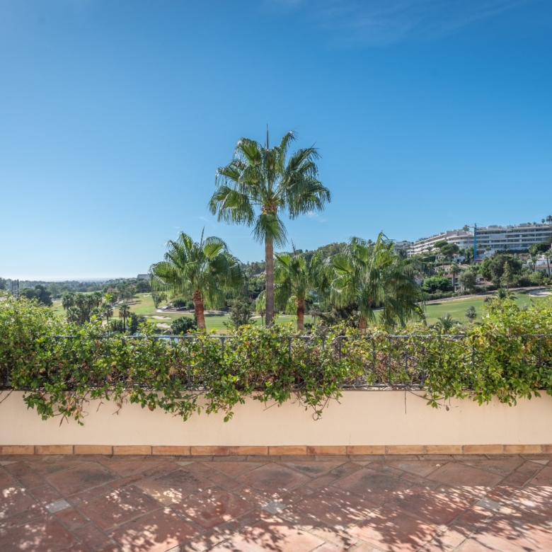Presenting a unique opportunity to acquire an outstanding 3-bedroom duplex penthouse in the highly desirable Las Alamandas. This gated complex offers 24-hour security, three swimming pools (including a heated pool), beautifully manicured tropical gardens, a gym, and a sauna. Ideally situated between Los Naranjos Golf Club and Las Brisas Golf, this development is a favorite among golf enthusiasts. Residents can enjoy easy access to a variety of amenities, including shops, supermarkets, restaurants, Puerto Banús, and local beaches.