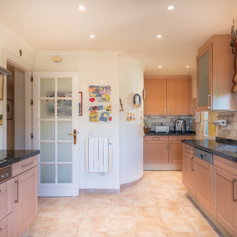 The fully equipped kitchen includes a utility room, complemented by a welcoming hall and a cloakroom. The three generously sized bedrooms come with en-suite bathrooms, equipped with underfloor heating, powerful shower/bath combinations, double vanity units, and a Jacuzzi in the master suite.
