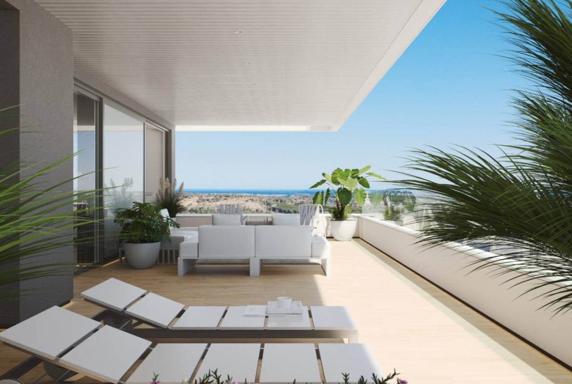 These beautiful new build apartments combine the spaciousness and exclusivity of a villa with the comforts of living in a luxury apartment. Two blocks with only 8 apartments each, manage to raise the concept of villa to heights with one of the most prestigious views in Las Colinas Golf & Country Club Resort. Space, warm light, superior design and amazing views. Curated interiors designed by the international architect Manuel Clavel that expand harmoniously to connect with nature. Clavel Arquitectos shows a new idea of luxury based on the “new warm contemporary design” and focused on the outline of spaces with pleasant shapes, earthy color scheme, and a local atmosphere connected to the outdoor filling all the rooms with harmony.