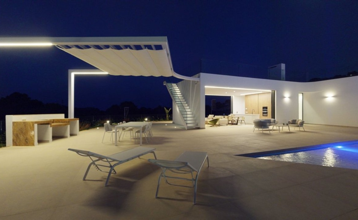 Statement Villa. A Stunning 3 bedroom 3 bathroom detached villa for sale on this prestigious award-winning development, this key ready luxury home offers intelligent home features, a lovely curved private pool, garage, and underbuild rooms plus a sweeping curved full size 113m2 solarium with stunning views.