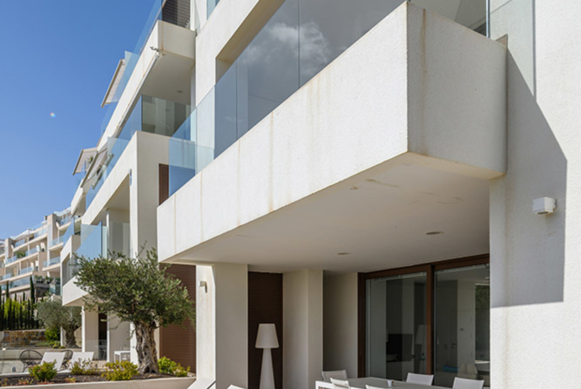 This spacious sunny apartment enjoys magnificent panoramic views towards the Mediterranean forest and the sea. The exterior spaces of the property are outstanding, bringing the warmth of the Mediterranean light into the interior.