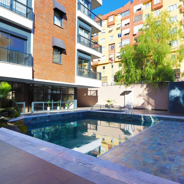 Moreover, the complex includes both open and indoor pools, sauna, Turkish bath, fitness center, meeting room, children’s areas, and 24/7 camera surveillance.