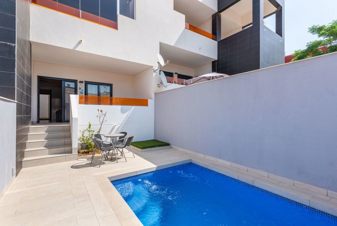 Beautiful ground floor ultra modern apartment ideally located in the sort after area of Los Altos, a stones throw from amenities this would make an ideal rental apartment as it has a tourist license! Clean cut lines and finished to the highest standards this apartment won’t be on the market long. We start in the front patio with a quality plunge pool, a few steps take you on to a sunny terrace which can be accessed from the master bedroom as well. The front door leads into an open plan lounge dining area which intern leads to the fully fitted kitchen with all appliances. There are two great sized bedrooms with the mater bedroom furnished with an ensuite shower room, again finished to the highest standard. The family bathroom is a good sized and conveniently located between the bedrooms. All in all this is a quality property, a real gem, book your visit as soon as you can, you wont be disappointed!
