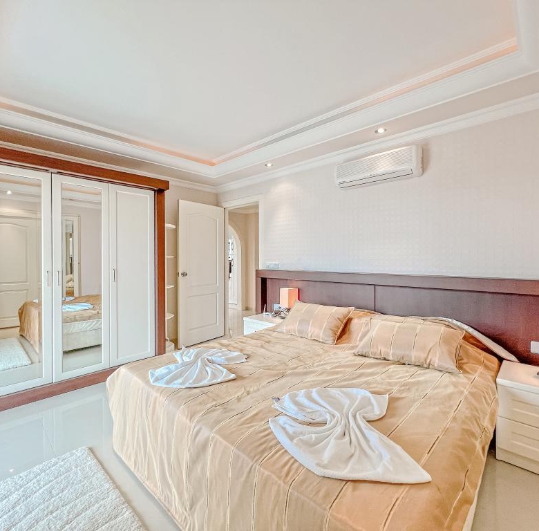 Step into a world of luxury and sophistication with this exceptional 2+1 apartment located in the heart of Mahmutlar. Nestled just 50 meters from the pristine shores, the project offers an unbeatable combination of elegance, convenience, and breathtaking views. Situated on the 7th floor of an 11-story building, this spacious 125 m² residence presents a perfect blend of modern design and functional living.Main Features:- Spacious 2+1 layout with two bathrooms- Expansive 125 m² of beautifully designed living space- Panoramic sea, mountain, and city views from a private balcony- Fully furnished with stylish furniture and modern appliances- American-style kitchen with top-of-the-line white goods- Luxurious features like a jacuzzi, parquet and marble flooring- Climate-controlled environment with air conditioning and underfloor heatingUnique Selling Points:- Prime location just 50 meters from the beach- Access to both indoor and outdoor swimming pools- On-site amenities including a sauna, hammam, and tennis court- Secure building with parking, elevator, and 24/7 security services- Stunning garden views and serene surroundingsExperience the unmatched advantages of residing in the project, where every detail is designed with your comfort and convenience in mind. Whether you’re relaxing in the sauna, taking a dip in the pool, or enjoying the vibrant city views from your balcony, this property promises a lifestyle of leisure and luxury.Don’t miss the opportunity to own a piece of paradise in Mahmutlar. Contact us today to learn more about this exceptional property and schedule a visit. Discover the perfect blend of comfort, style, and location that makes this apartment a must-have investment. Act now and elevate your living experience to new heights with the project.