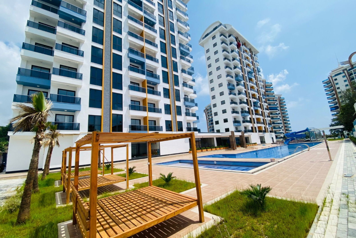 Nestled in the vibrant heart of Mahmutlar, Alanya, this spectacular property offers an unmatched blend of luxury, comfort, and convenience. Situated just 250 meters from shopping centers, 1.8 km from the pristine beach, and a mere 33 km from the airport, the project provides easy access to all your essential destinations, making it a prime choice for savvy investors and lifestyle seekers alike.Step into a world of elegance with the project, where every detail has been meticulously crafted for your utmost comfort. The property boasts twelve floors of opulent living spaces, each designed to offer breathtaking views and abundant natural light.Main Features:- State-of-the-art security system with cameras- Barbecue and outdoor entertainment areas- Billiards and game room for leisure activities- Cable TV and satellite connectivity- Onsite café for your dining pleasure- Children’s park and dedicated children’s room- Indoor and outdoor pools, including a children’s pool- Private cinema experience- Fully equipped gym- Lush gardens and expansive green areas- Hobby and relaxing rooms- Massage and VIP spa facilities- Sauna, steam room, and Turkish bath- Conference and office spaces for business needs- Open car park and bicycle parking- Shuttle service to the beach- Restaurant and café on premisesWhat sets this property apart is its unparalleled array of amenities designed to cater to every aspect of your lifestyle. Whether you are looking for relaxation, recreation, or rejuvenation, the project delivers it all. From the tranquil spa and massage rooms to the exhilarating waterslide and cinema, every feature is curated to enhance your living experience.Embrace the opportunity to live in a community that prioritizes both privacy and connection, with dedicated spaces for social gatherings and solitary retreats. The project’s pet-friendly policy and technical services ensure that all members of your household are taken care of.Don’t miss out on the chance to make this exquisite property your new home or investment. With its prime location, stunning amenities, and thoughtful design, the project is truly a must-see. Take the first step towards your dream lifestyle and explore the endless possibilities that await you in Mahmutlar. Act now to secure your place in this extraordinary community and elevate your living experience to new heights.