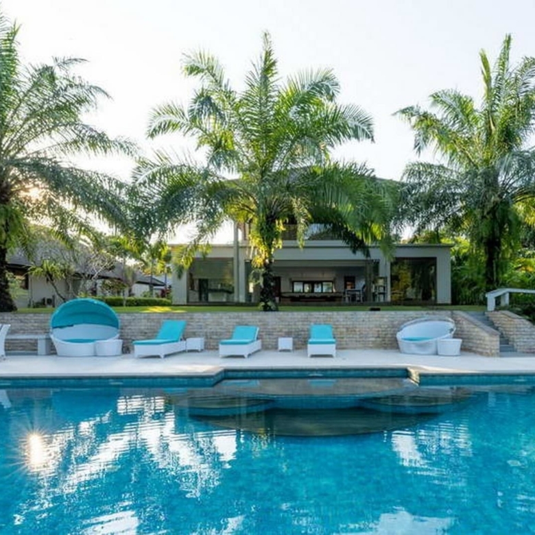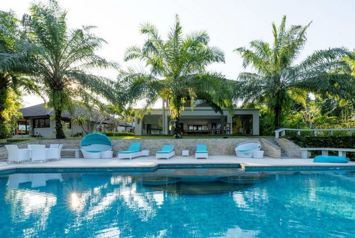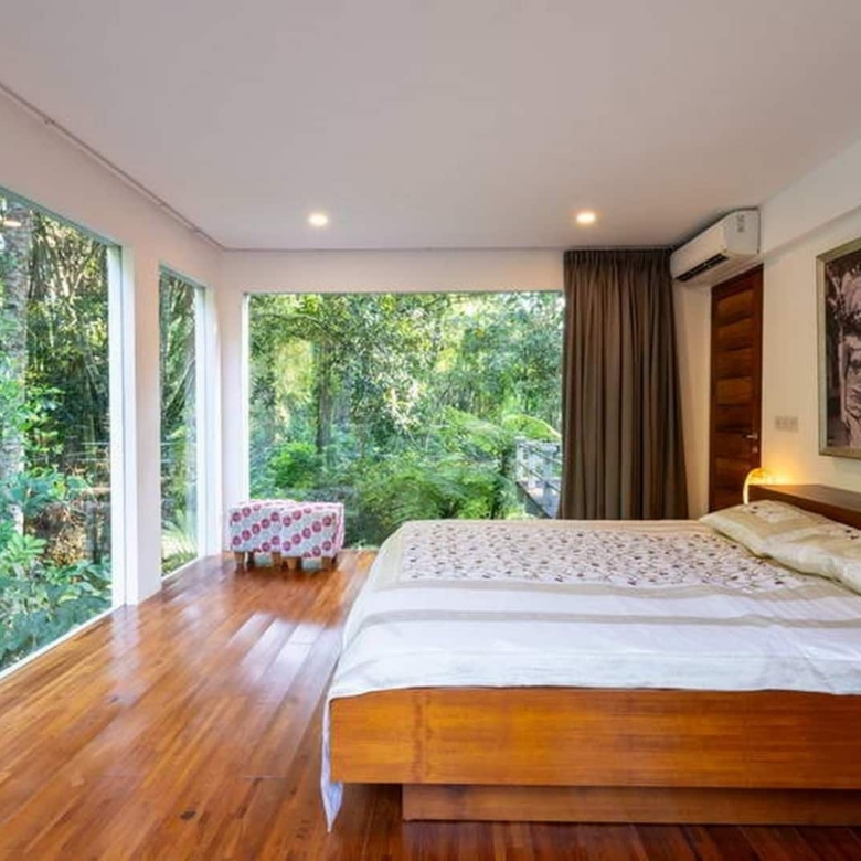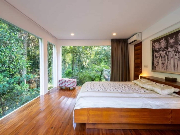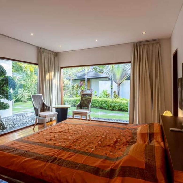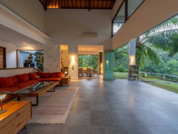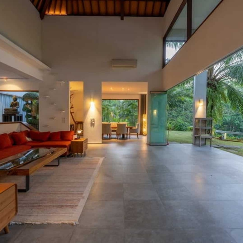 Nestled in the serene heart of Tanah Lot, Tabanan, is an incredible property that epitomizes luxury and tranquillity.Spread over a sprawling 9050 square meters of land, this estate boasts 1637.5 square meters of meticulously designed and built structures, offering an unparalleled experience for those seeking the epitome of relaxation and comfort.As you enter the grounds, you’ll discover two 1-bedroom apartments and a single 2-bedroom apartment, all meticulously designed for maximum comfort.These living spaces offer privacy and are ideal for accommodating guests or generating rental income.There are two additional villas, each designed with the same dedication to luxury and comfort.The first villa is a 2-bedroom haven with two bathrooms, one en-suite.It boasts an open-plan lounge, dining area, and kitchen, providing the perfect setting for relaxation and socializing.The second, a two story one-bedroom en-suite villa, offers a unique experience with large glass windows that frame the mesmerizing forest, illuminated at night by carefully placed forest lights.The glass-enclosed shower provides an immersive nature experience as you cleanse amidst the lush surroundings.The property’s most captivating feature is its unobstructed view of lush forests and a meandering river.It’s a place where time seems to stand still as you’re surrounded by the soothing sounds of nature.This property truly encapsulates the essence of Bali’s natural beauty.As you approach the entrance of the main house, two elegant outdoor water features gracefully welcome you, setting a serene ambiance before you step into the expansive entrance hall, a space that embodies architectural elegance.The house comprises two spacious en-suite bedrooms, complete with walk-in dressing rooms for your convenience.The open-plan kitchen, dining room, and lounge areas feature high ceilings and glass stacking doors that seamlessly blend the indoor and outdoor spaces.From here, you’ll enjoy uninterrupted views of the pool and the covered entertainment area, which itself overlooks the enchanting river and the pristine forest beyond.The centrepiece of this resort is undoubtedly the 7×14 meter infinity pool, ingeniously built on solid rock. As you take a dip or lounge by the poolside, you’re treated to a visual symphony of natural splendour.Fresh, potable water is provided throughout the property by a top of the line, sophisticated water filtration system, and several boreholes ensure uninterrupted water supply.Your peace of mind is paramount, and the property is well-equipped with a dedicated guard house, behind a large automated secure gate, providing additional safety. Beyond this you will find ample parking for up to 10 cars. Adding to the sense of security and convenience there is an additional Estate Managers villa comprising of 3 bedrooms, bathroom and kitchen.For those who would prefer to skip the commute from Bali International Airport, there’s sufficient land clearing to the side of the estate to land a helicopter. Additionally, a generator ensures uninterrupted power supply throughout the property.This incredible property in Tabanan’s peaceful Tanah Lot area is a sanctuary for those seeking an unparalleled level of luxury, comfort, and natural beauty.From its stunning infinity pool to its thoughtfully designed living spaces and security measures, this property stands as a testament to the art of fine living in Bali’s most picturesque setting.Whether you seek a personal retreat or a lucrative investment opportunity, this home offers the best of both worlds.