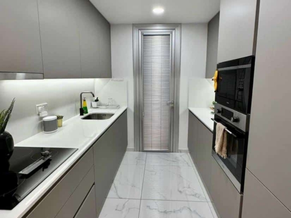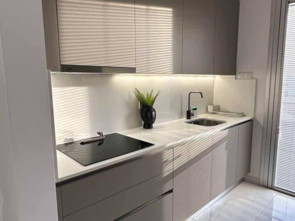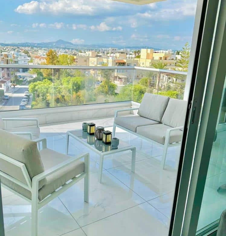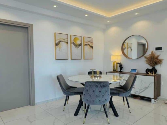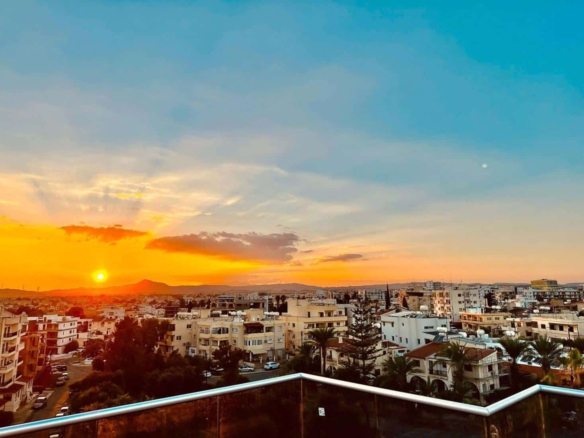 This new luxurious penthouse in the prestigious Faneromeni area of Larnaca offers stunning panoramic salt lake views and is within walking distance of shops, cafes, and the renowned Finikoudes promenade. The property features an open-plan kitchen, living and dining area, two bedrooms with fitted wardrobes, an en-suite master bedroom, and a family bathroom. Designed with modern elegance, it boasts high-quality Italian finishes, top-brand appliances, glass balconies, and a clever layout for privacy and comfort. Additional features include a veranda, a roof garden, covered parking, and a storage room.