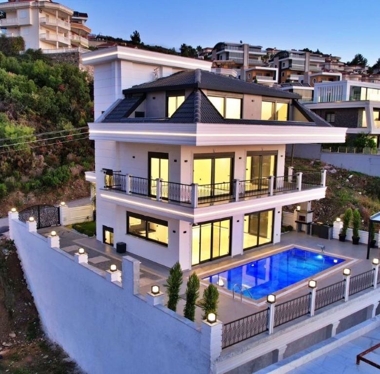 Luxury villa in Kargicak Alanya step outside to discover a large private pool surrounded by beautifully manicured gardens. Multiple terraces provide ideal spots for relaxation or outdoor gatherings with friends and family. Located in one of Alanya’s most exclusive neighborhoods, this villa offers easy access to pristine beaches, local shops, and a variety of dining options. Experience elegance and comfort in a prime location that combines luxury living with everyday convenience.