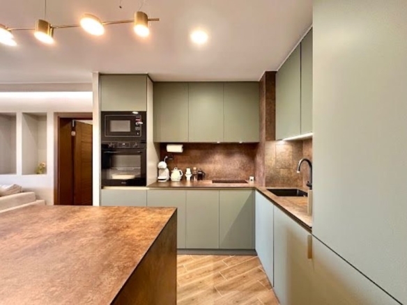 We are pleased to offer this very stylish apartment, finished to an excellent standard, situated only 100 m to the beach. The property is part of Omega resort, which is located 500 m from the center of the village. On-site facilities include: – outdoor swimming-pool; – gazebo; – BBQ area; – kids center. The apartment is situated on the 2nd floor and has a total area 123 sq.m. It comprises of: – open-plan kitchen with living-room; – 2 bedrooms; – 2 bathrooms; – terrace with views to the surroundings and territory of the complex; – cellar. Brand new furniture in excellent condition. Annual maintenance fee – 8 EUR/sq.m.