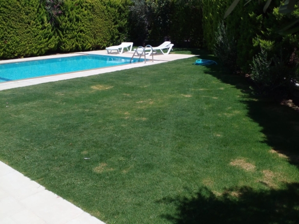 While the interior is a masterpiece of design, the true allure of this villa lies in its exceptional outdoor living spaces. The property is set within large, beautifully landscaped gardens, which provide a verdant and secluded oasis. Here, you can enjoy the Mediterranean climate in complete privacy, surrounded by lush greenery and vibrant flowers. The centerpiece of the garden is the sparkling private swimming pool, a refreshing haven on warm summer days. The pool area is perfect for sunbathing, al fresco dining, or hosting memorable poolside gatherings. The extensive gardens also offer plenty of space for children to play, for a small vegetable garden, or for simply finding a quiet spot to read a book in the shade of a tree.