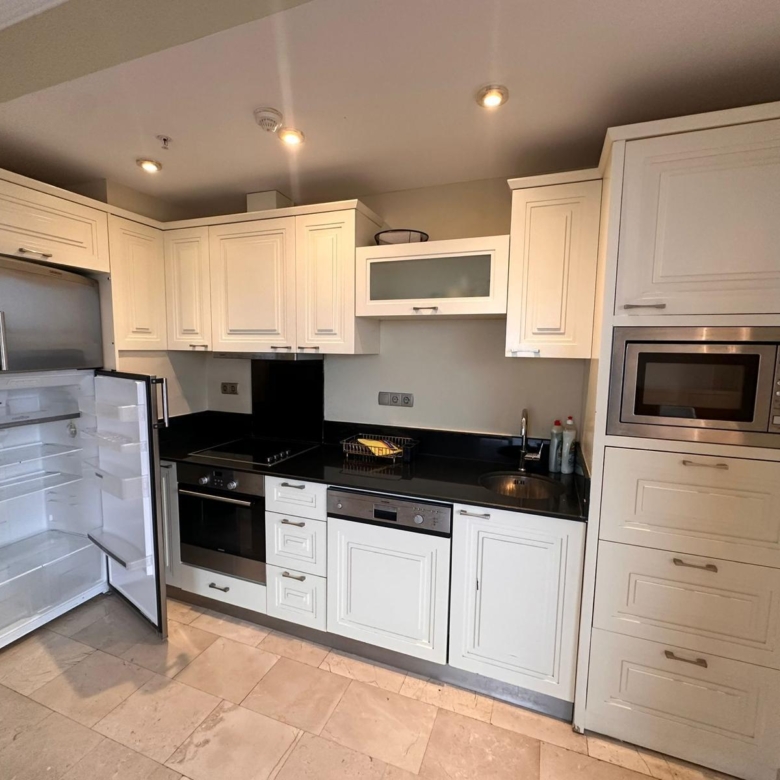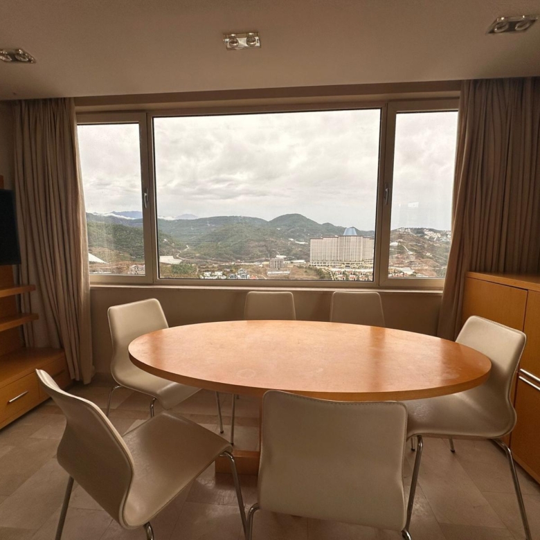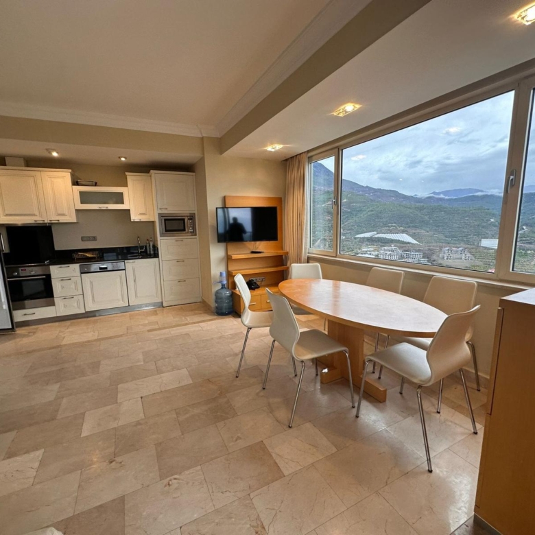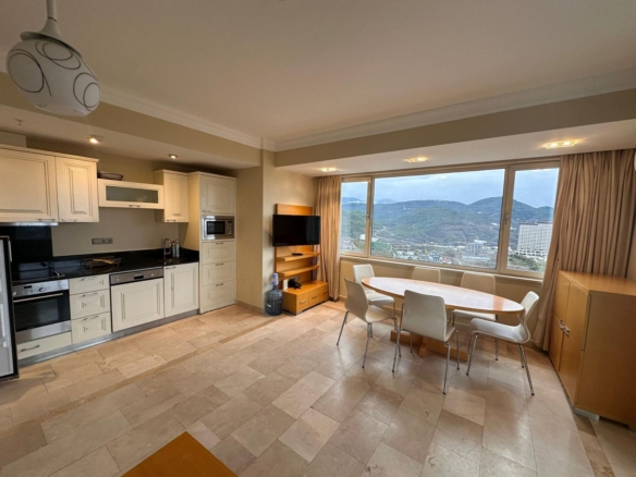 Furnished apartment in Gold City Kargicak – Experience luxurious living in this fully furnished 3-bedroom apartment located on the 12th floor of Gold City in Kargicak. Boasting an impressive 125 m² layout, the property features an en-suite bathroom, an open-plan kitchen, and stunning views of the sea, pool, city, and surrounding nature. With its spacious design and high-quality furnishings, this home offers both comfort and style.