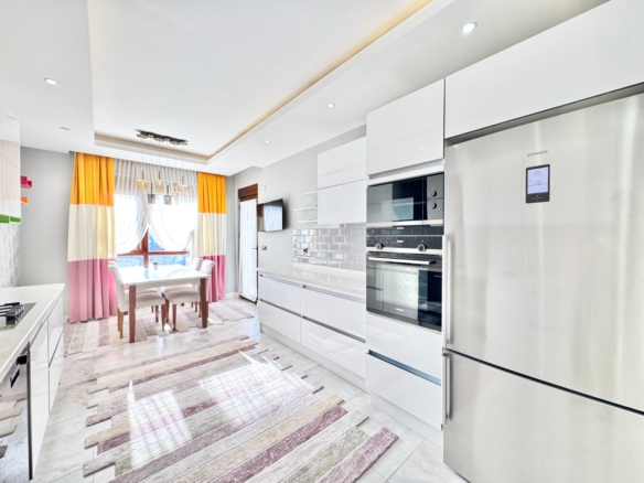 The Yeşilbahçe Konakları complex is full of amenities designed for your comfort. Enjoy the outdoor pool, aqua park, fitness center, sauna, steam room, and barbecue area. There is also a kids’ club, library, basketball court, tennis court, and on-site cafeteria. Security is ensured with 24/7 surveillance. Built in 2019, this apartment is ready for you to move in. It is an excellent opportunity for those looking for an Alanya apartment for sale with all the amenities and the potential for citizenship.