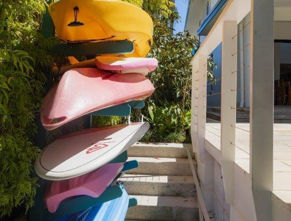 Catering for children, there is a 3-level treehouse with a rope ladder, fireman’s pole and dungeon in a banyan tree beside the driveway. The established ocean view gardens host a kids’ playground facility with multiple slides, swings and monkey bars.