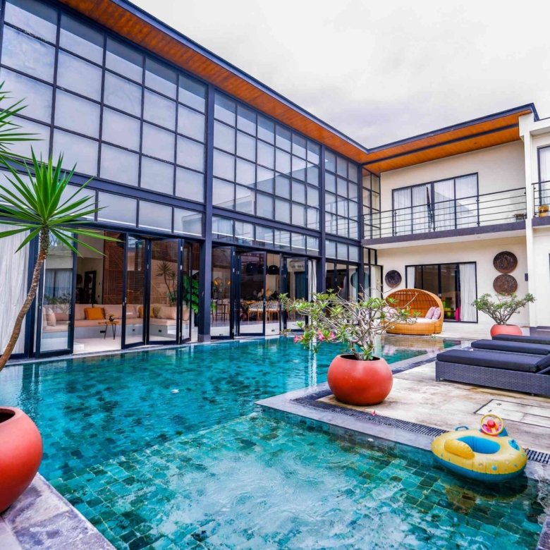 This breathtaking five-bedroom luxury villa in Pererenan redefines modern tropical living. Spanning 430 m², it features a private cinema, enclosed living areas, and a lush garden terrace overlooking the pool. Designed with premium finishes and built for entertaining, it’s just minutes from Pererenan Beach and Bali’s top international schools. Perfect as a family residence or high-return rental property in one of the island’s most desirable areas.