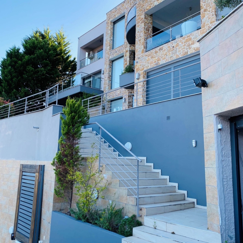 Zoe’s Villa is a three-story, 550 square meter property situated on a generous 625 square meter plot. The maisonette, spanning the first and second floors, features four bedrooms, including a master bedroom with an en-suite bathroom, two additional bathrooms, a separate WC, a spacious kitchen, and a large living room.