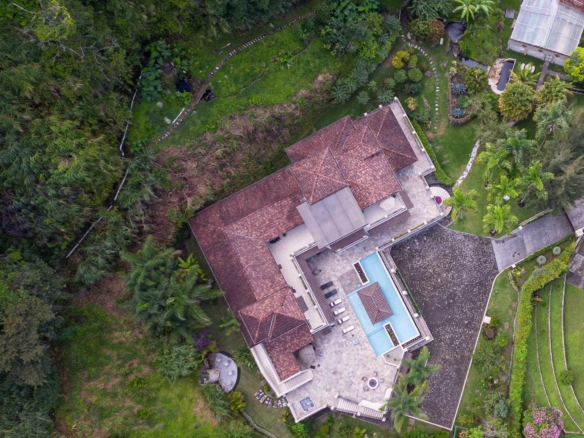 One of the largest homes in Panama, this one of a kind, 23,000k sq ft estate is positioned at the highest point of the Valley, set against the mountainside. Strategically positioned between the 2 coastlines, a quick 1 hour drive to the pacific beaches and 2 1/2 to the Caribbean islands. This estate home is the perfect family or corporate retreat. Plenty of space for privacy. Enjoy comfortable year round temperatures without mosquitos, while viewing the sunset from your private balcony of the 4th level terrace. This immaculate estate comes fully furnished with 7 bedrooms, of which 3 are Master Suites accompanied by 9 full bathrooms & 2 half-baths. A built in elevator provides easy access to all 4 stories. Host your guests in any of the 3 on site guest houses.The estate is equipped with full time, triple gate security and camera systems and is completely self sufficient by propane generator and back up well with fully functional hydroponics greenhouse, spring fed ponds and sprinkler system.