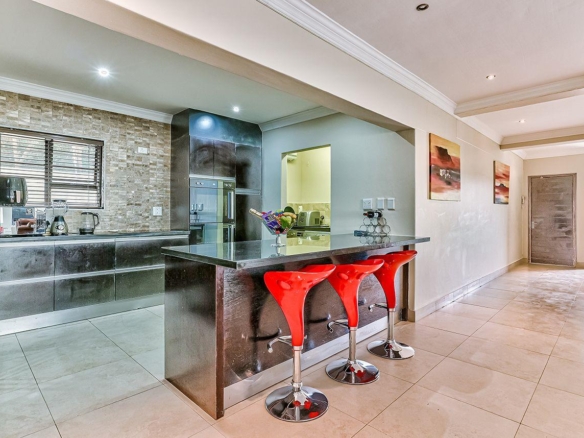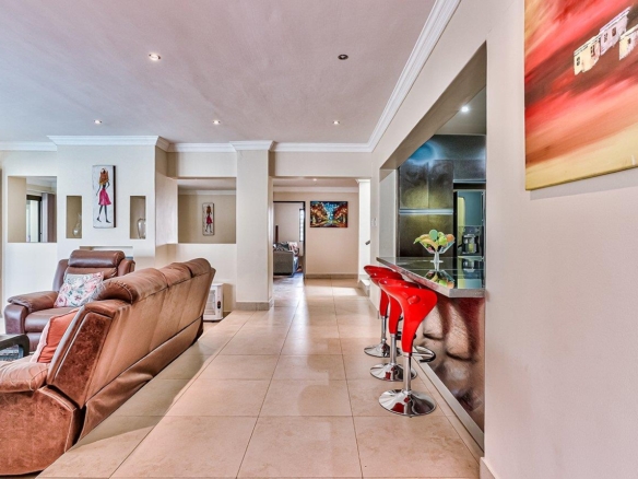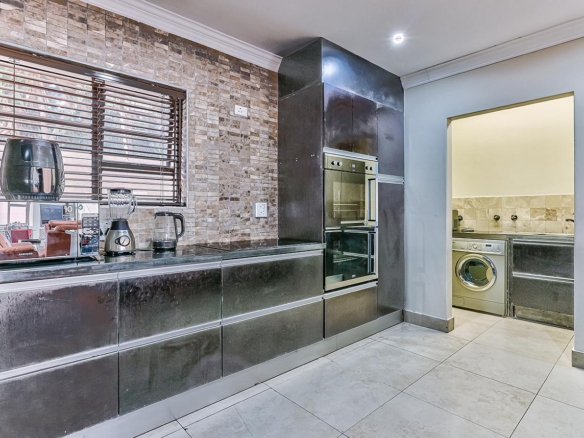 Extend your living space to the expansive entertainment area, enclosed with glass stacker doors. This versatile space seamlessly blends the indoors and outdoors, perfect for al fresco dining or hosting memorable gatherings. Step outside and cool off in the sparkling swimming pool, surrounded by a delightful garden – your own private oasis in the heart of Cape Town.