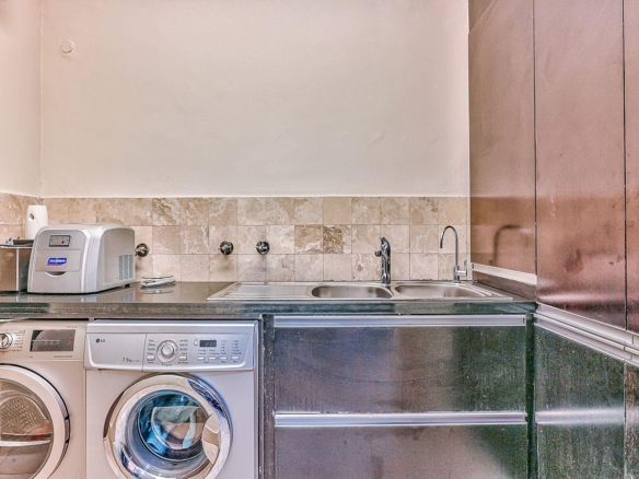 Unwind in the light-filled lounge, perfectly air-conditioned for year-round comfort. The adjoining dining and TV room offers a space for family gatherings or movie nights. Imagine whipping up culinary delights in the fully-equipped kitchen, boasting ample built-in cupboards and sleek slate countertops. The state-of-the-art electric induction stove allows for precise cooking and easy cleaning. A dedicated pantry with air conditioning ensures all your culinary supplies are kept fresh and organized.