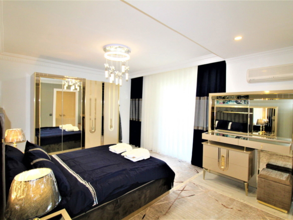 This impressive 3 room apartment for sale in Alanya ,its inside the highly regarded Alanya Park complex in Cikcilli. With a total area of 120 m², the apartment features an open-plan kitchen, en-suite master bedroom, two spacious balconies, and a full panoramic view of both the sea and Alanya Castle.